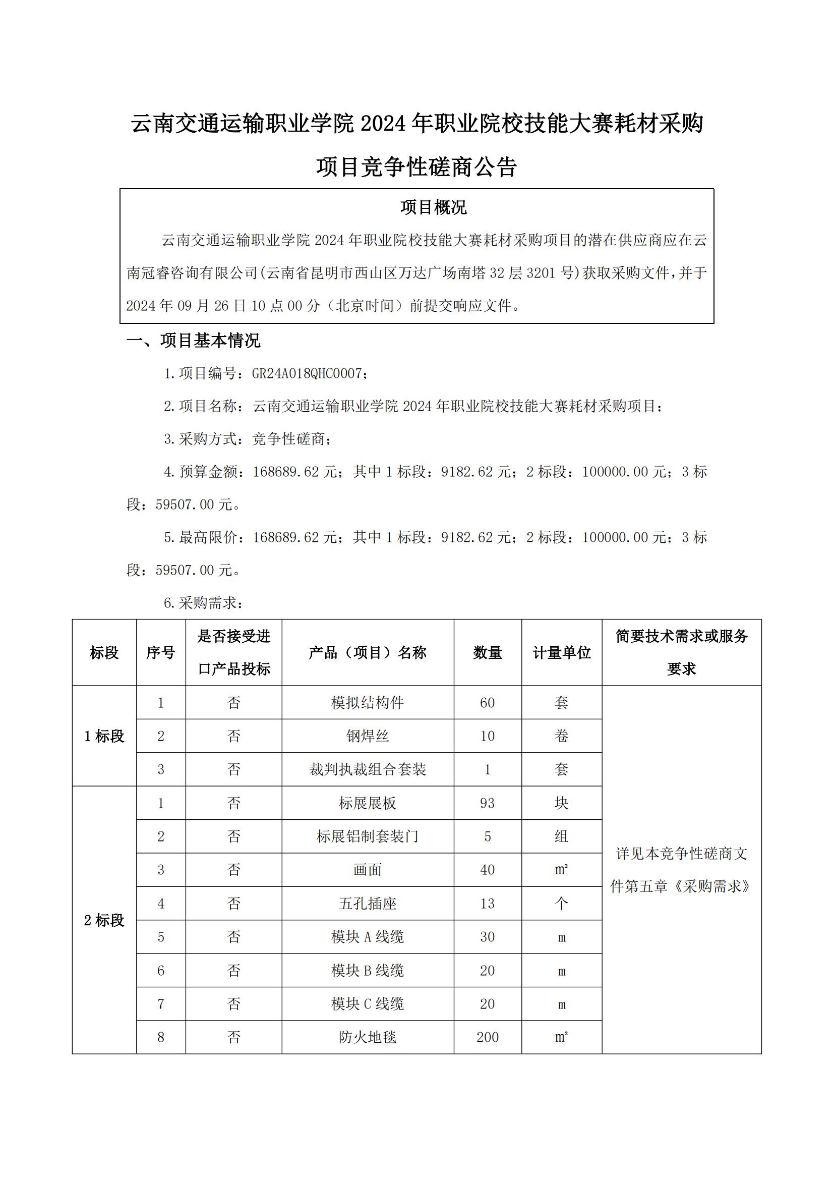 云南交通运输职业学院2024年职业院校技能大赛耗材采购项目竞争性磋商公告